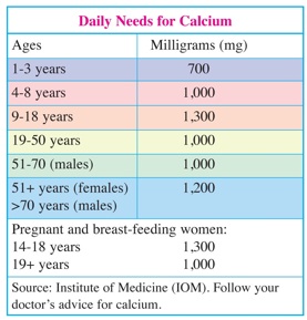 *Check for updates on calcium and vitamin D needs from www.iom.edu.