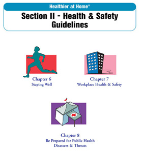 Chapter 6 gives information on ways to stay well and prevent disease. It starts with “Ten Basic Steps to Stay Healthy & Safe.” These are listed on page 39 of your Healthier at Home® book. Included are common sense things like get at least 6 to 8 hours of sleep per night; wash your hands often; and have regular screenings and exams, which we will address later. |