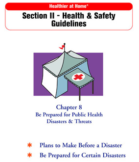 Chapter 8 is “Be Prepared for Public Health Disasters & Threats.” This chapter is not just about being prepared for a possible terrorist act, but also for weather-related disasters. Has anyone experienced a hurricane or tornado? Did you learn what to do in the event that another one would occur? This chapter gives information and Web sites for more information on how you can prepare for these and other disasters. It also has a list of items to keep in an emergency supply kit.