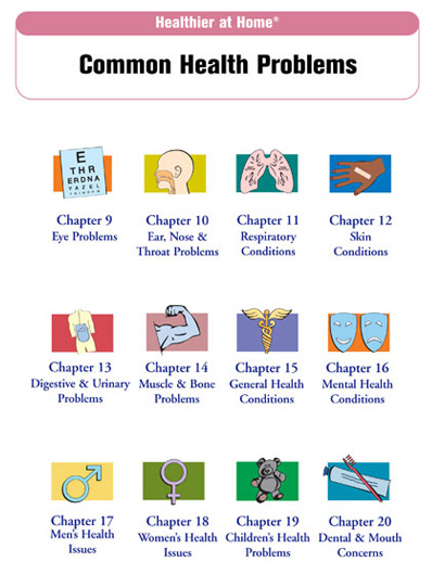 Each health problem in Section II, as well as, Section IV – Emergencies & First Aid – is divided into parts: 1. Facts about the problem: What it is, what causes it, signs and symptoms, and treatments 2. YES or NO questions to help you decide if you should get help fast, see your doctor, call your doctor, or use self-care 3. A list of Self-Care / Prevention tips to deal with the problem